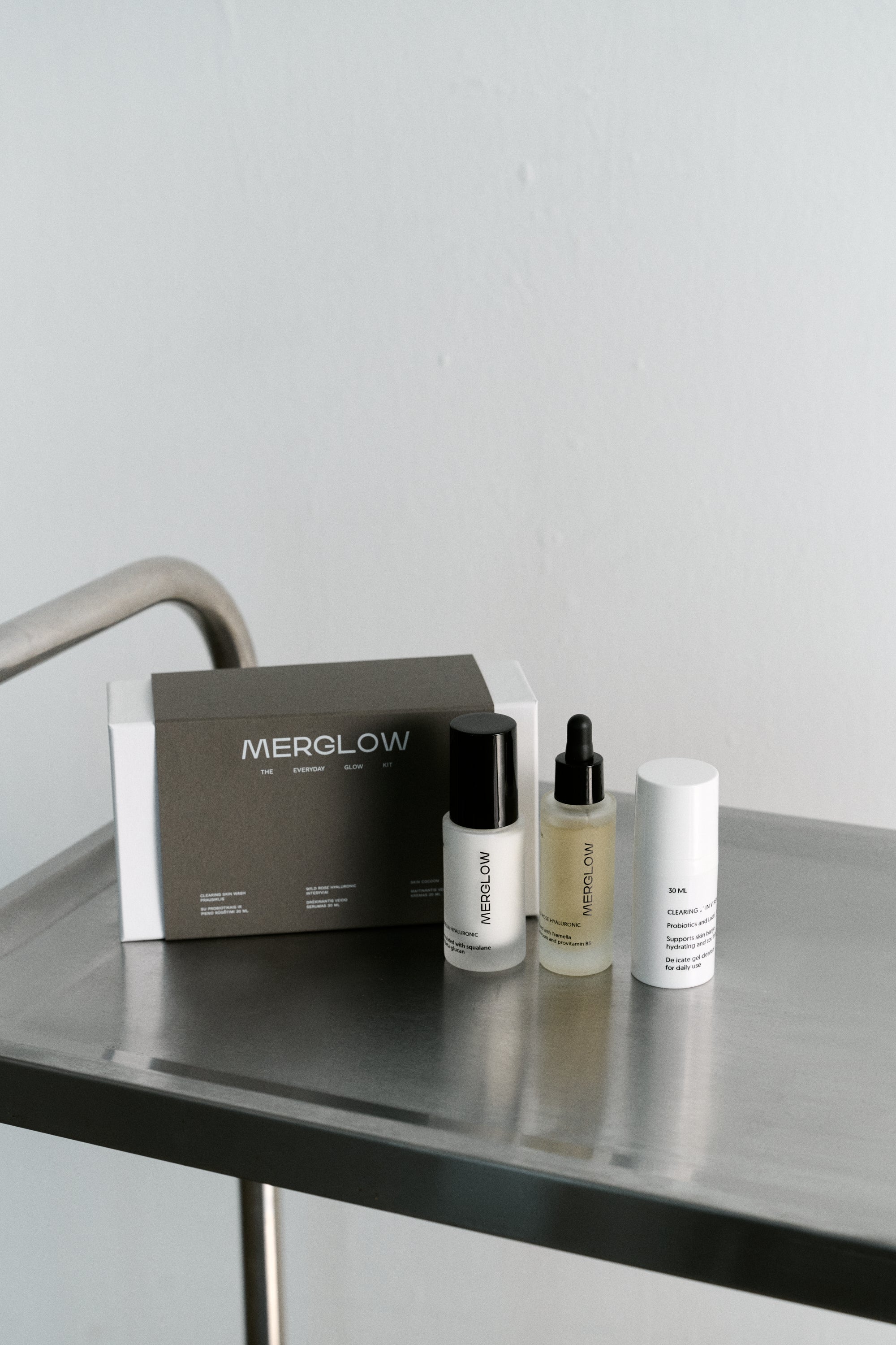 "The Everyday Glow Kit" - tai ne odos priežiūros rutina, o kasdienis ritualas, kuris padeda sugrįžti į save. Švelnus "Clearing skin wash" prausiklis su probiotikais giliai valo išlaikydamas drėgmės balansą ir paruošia odą tolimesnei priežiūrai. "Wild rose hyaluronic" veido serumas intesyviai drėkina ir suteikia odai švytėjimo, o "Tremella hyaluronic" kremas užrakina drėgmę ir ramina.